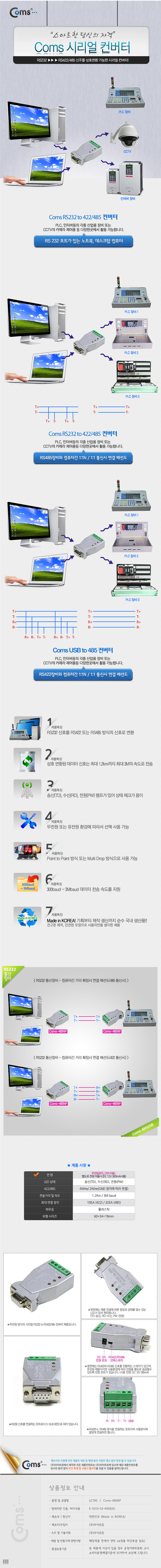 | ¸ðµ¨¸í | ÄĽº LC793 RS232 to 422/485 ½Ã¸®¾ó ÄÁ¹öÅÍ Coms-485NP | ||